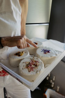 For the past two years, she has dedicated herself to the production of fermented vegan cheeses, transforming nuts, seeds, and legumes into creations with complex and surprising flavors.